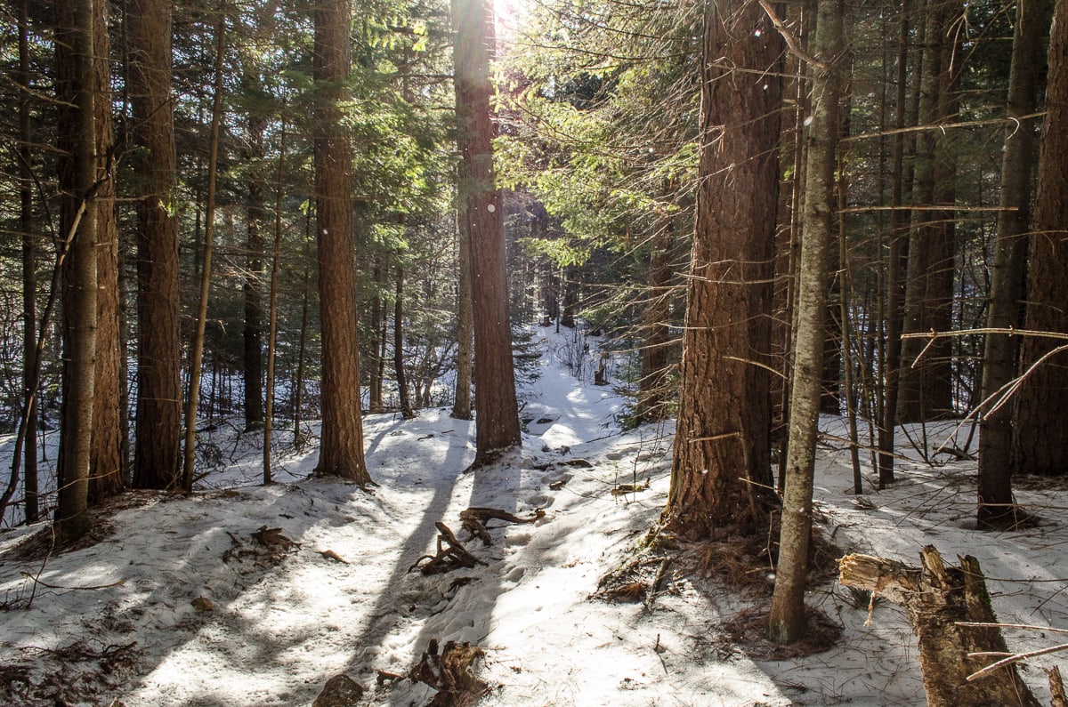 Not every mountain is accessible with a short day hike. Some of them require you to camp overnight in the wilderness. Our first trip the Adirondacks involved us losing our way, not knowing that there were bears, and wandering in the dark in circles while we tried to re-locate our tent after cooking. This picture was taken somewhere in the Dix Mountain Wilderness, in a dark forest inhabited by what we felt were several bears.