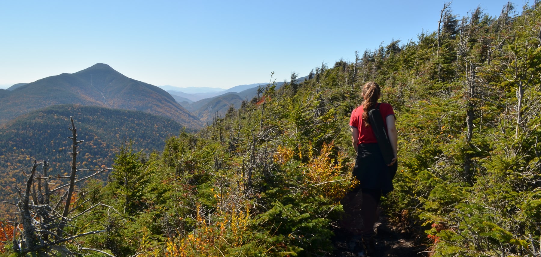 On the trail down Phelps Mountain. Note the windswept trees