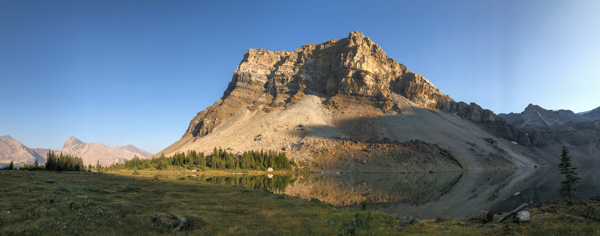 We weren't even supposed to be here. We were supposed to scaling the mile-long scree field to get to Abbott Hut, and stand over the continental divide. But Banff had other plans for us, and rock slides forced us off our intended destiny. Following frantic last minute research, we decided to wander into the back-country following Mosquito Creek, and camp by a mirror-like lake past the great Molar Passes.