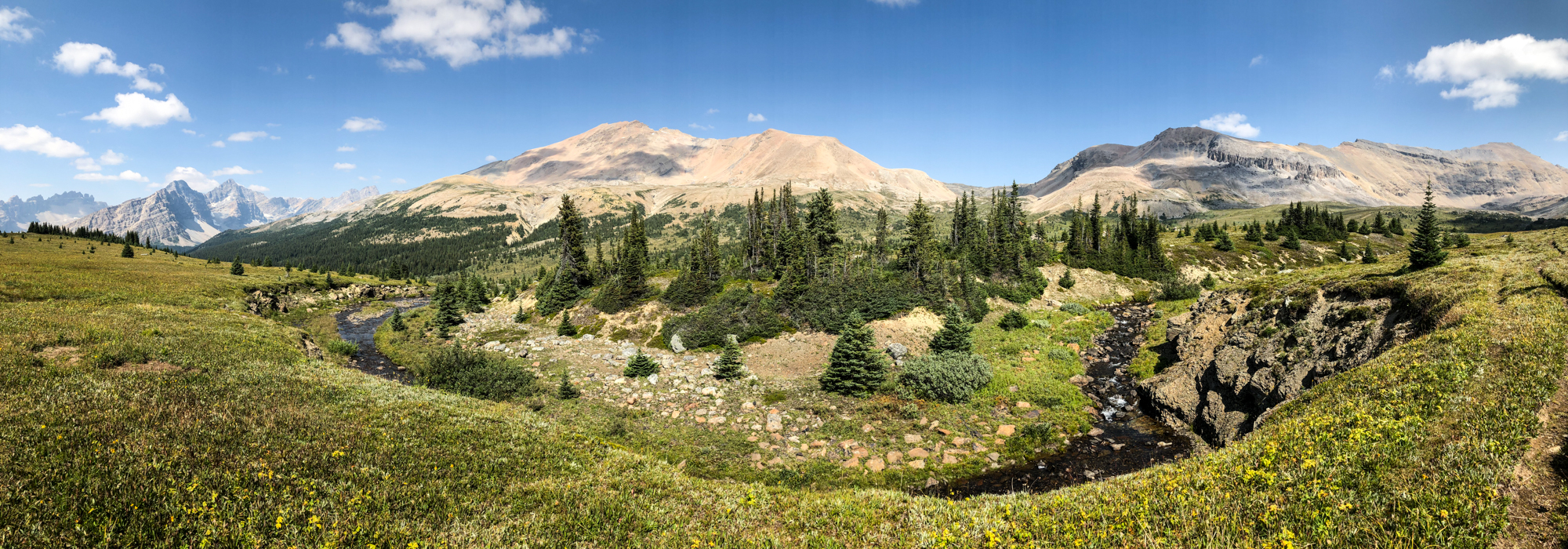 Spherical panorama of the trail past Mosquito Creek towards Molar Pass. You can interact with it and look around.