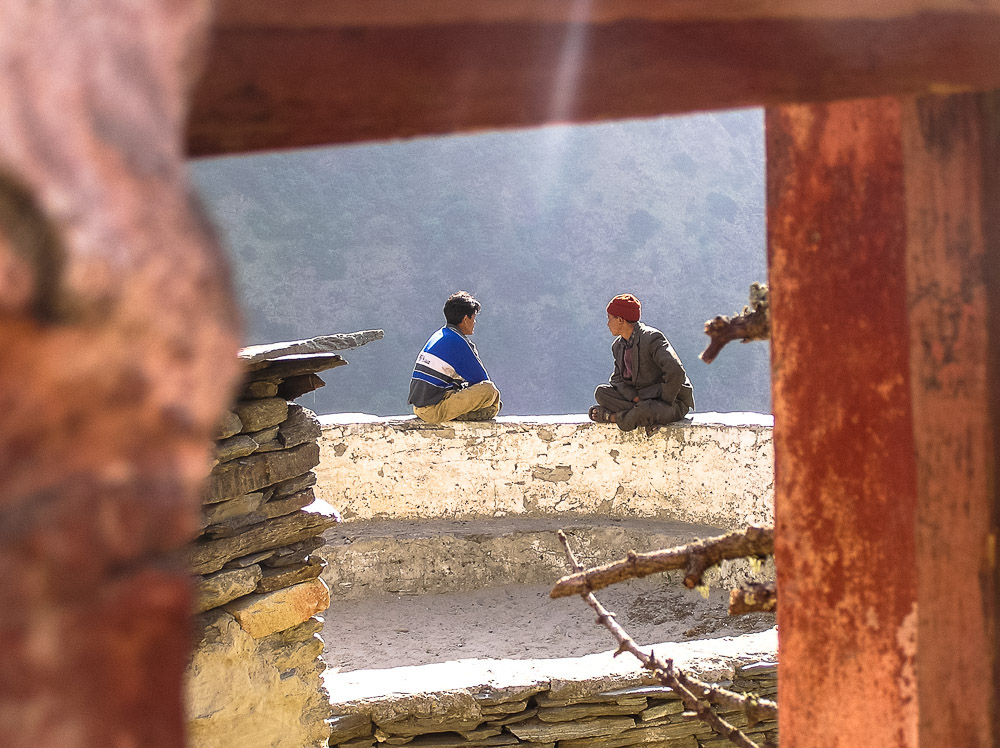A few of the village folk enjoy the morning sun admiring the view, catching up on the latest gossip, no doubt.