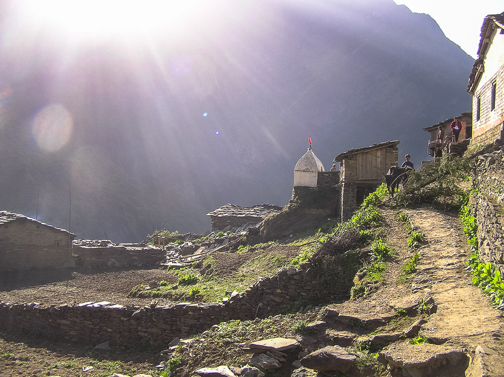 I spend the morning exploring the village, which seems mostly abandoned. The houses are locked as their owners haven't returned from their winter homes further down the valley.