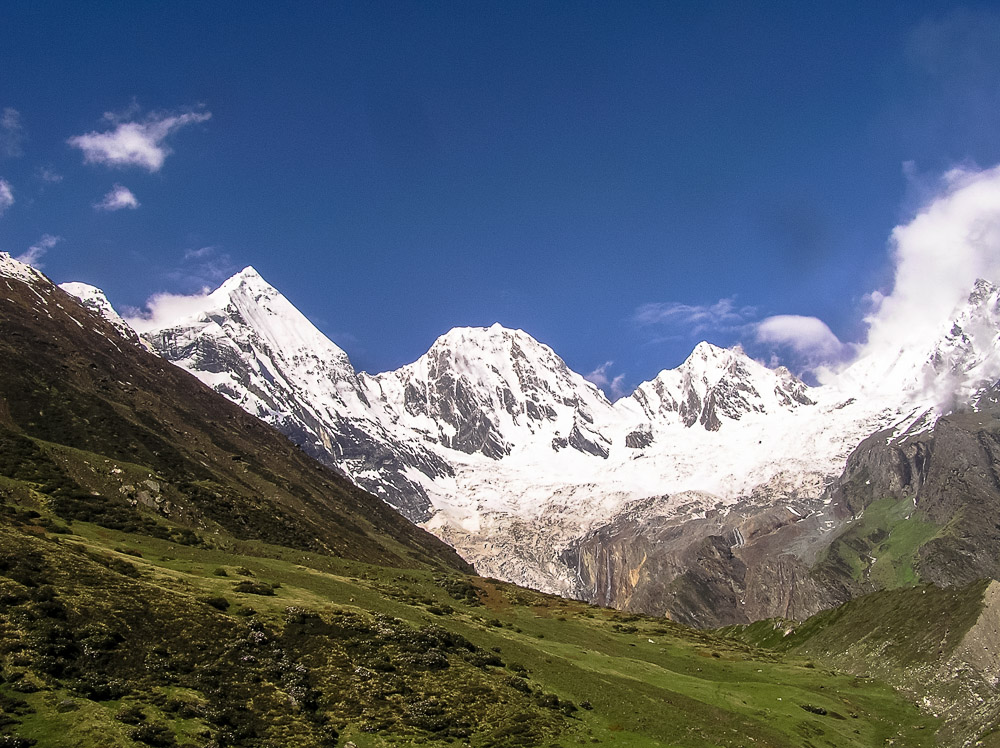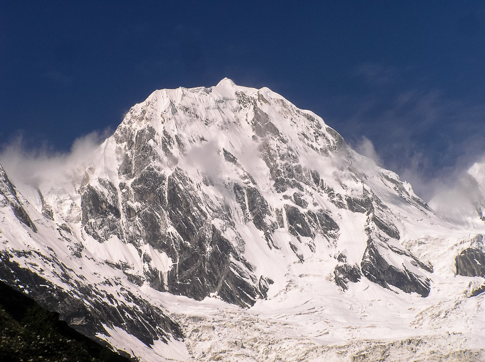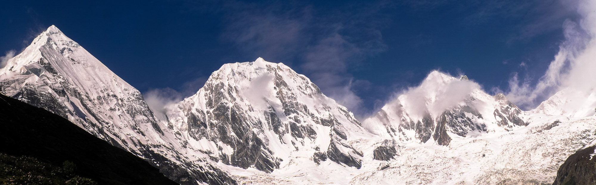 Three of the five peaks of the Panchachuli, with a view of the massive glacier that comes down from the peaks.