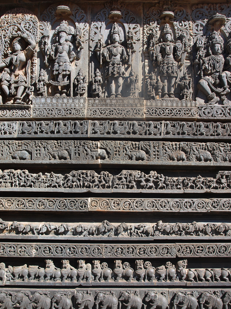 A few hundred kilometres away is the ancient temple complex of Halebidu (which literally means "old city"), the 12th century capital of the Hoysala Empire. The walls on this temple are covered in these intricate carvings.
