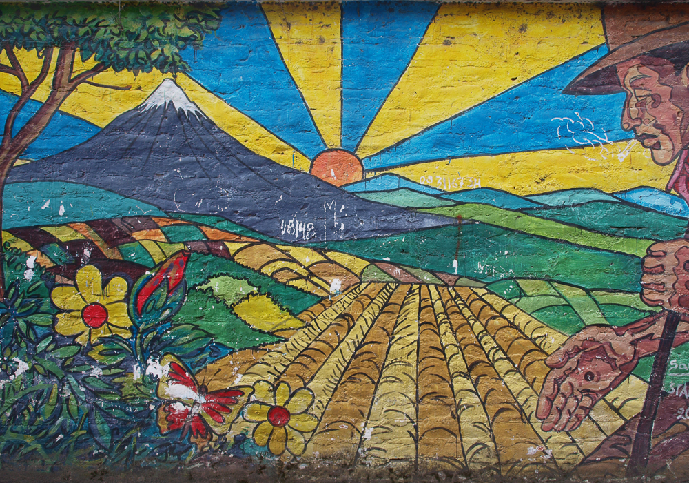 In other cases, a colourful mural makes you forget about the wall behind it. This wall shows you all the elements of life under the shadow of Tungurahua; life giver and destroyer of worlds. It's an active volcano, meaning that living under it is fraught with peril, but the ash and lava from the volcano makes the surrounding land incredibly fertile.